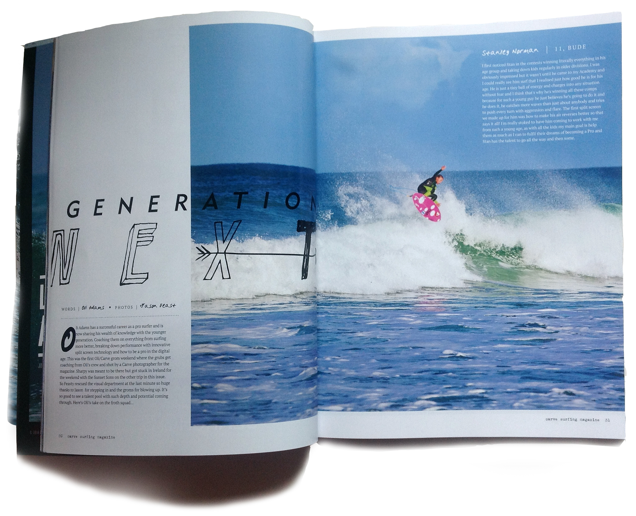 Carve Magazine/Media/trainning weekend with the UK’s Best Grom Surfers, 10 page feature of the weekend in Carve Magazine