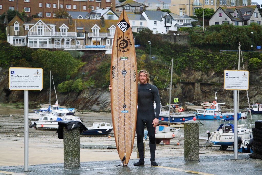 Ben’s amazing rides highlights one of the more sustainable surfboard options available that could help reduce our individual & collective impact on the environment, particularly from carbon dioxide emissions. Globally it is estimated that between 750,000 and 1 million surfboards are produced annually, emitting approximately 220,000 tonnes of carbon dioxide. This is equivalent to over 1 million flights from London to Morocco**. Surfers should be aware that carbon dioxide emissions and climate change are directly impacting our oceans, our beaches, our wildlife and even the very waves we ride. 20% of the UK’s reef breaks are surfed at low tide so are threatened by sea level rise (including the Cribbar), pollution incidents will increase due to more intense rainfall events driven by a changing climate and the very storm systems that generate surfing waves may change their trajectories starving surfing regions of rideable waves. Surfers Against Sewage’s Climate Change report details these impacts and other impacts from our changing climate and simple steps to reduce emissions.