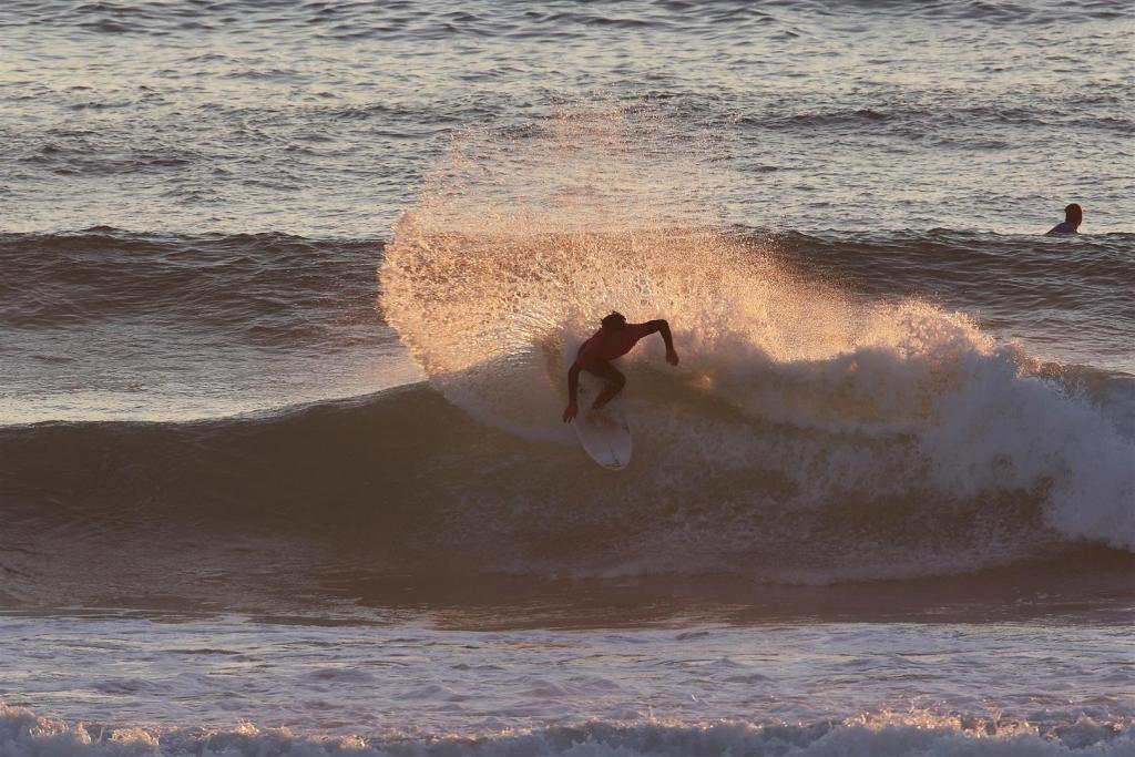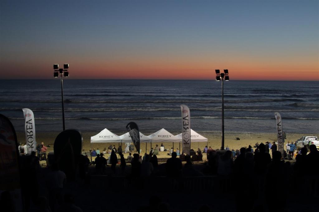 We were blessed with scorching sun through the finals with not a single cloud in the sky, the shoreline and Fistral Beach Bar was near capacity with people, all watching the surfing and enjoying Korev Lager. As the sun set an orange glow covered the horizon, the anticipation filled the air and finally the finals headed into the water.