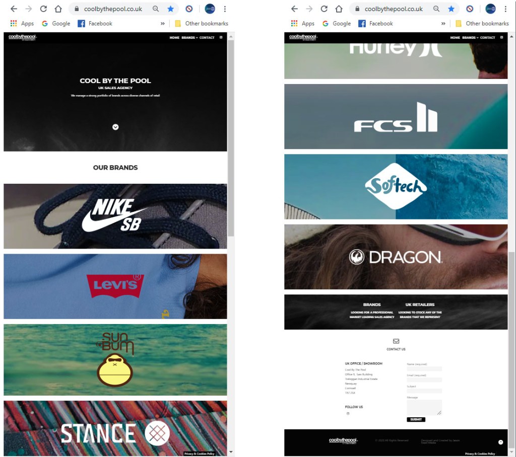 New website design for COOL BY THE POOL, a UK sales agency that manage a strong portfolio of brands across diverse channels of retail.
